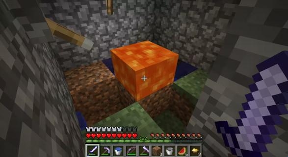 上方有处手动放置的永久岩浆源(按住Ctrl键消耗100经验放置),通过拉杆+活塞开关。