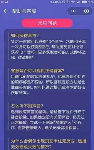2、如果你是一个细心的人,那么你一定会先点开[帮助与客服],查看这个小游戏需要注意的地方,比如如何获得音符?听不到声音怎么办?