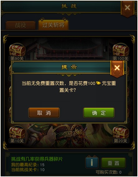 2. 玩家每天可以免费重置一次,之后可以花费一定的元宝进行重置。