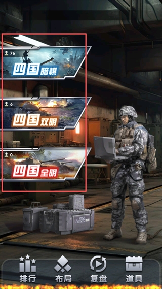 设有排位赛,玩家通过胜场积累积分,晋升军衔,从小兵到最高可获元帅称号,最有趣的是该游戏积分低于0会有“逃兵”头衔,不同军衔代表着不同的实力水平与荣誉。