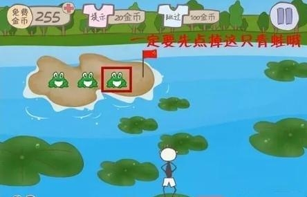 第十六关攻略:点最右边青蛙然后扔手机再接住到小人跳到棋子那