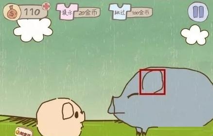 这一关是两只猪在讲话,要捂住大猪的耳朵,不然大猪就会被小猪吵死,将大猪的两只耳朵拉下来就可以了,左右换位置分布点击2只耳朵,记住是两只哦。