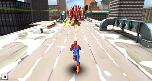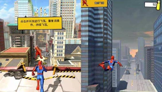 3、“蛛丝飞荡”状态则要求玩家长按屏幕,让蜘蛛侠从一栋楼飞到另一栋楼,途中千万别落地。但遇到电网或机器人等障碍时,要适当地松手,让蜘蛛侠避开这些致命伤害,具体一点描述,就跟玩《疯狂的小鸟》差不多。