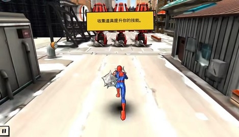 2、进入爬行或自由落地状态时,玩家要左右摇晃设备控制蜘蛛侠避开所有障碍物,搜集药水或工具,到达目的地。