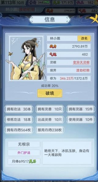 1、首先开局,变异天灵根开局:虽然修为要双倍,但是后期战斗力会更高,功法灵器更好选,单机嘛,怎么爽怎么来!也可以极品单灵根开局,就是功法跟灵器不好弄!