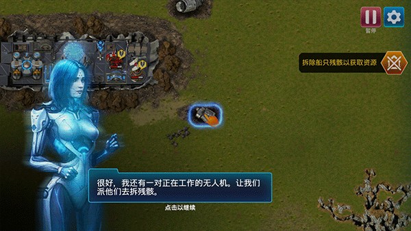 3、进入游戏时,首先派遣无人机去拆除残骸,来获得资源