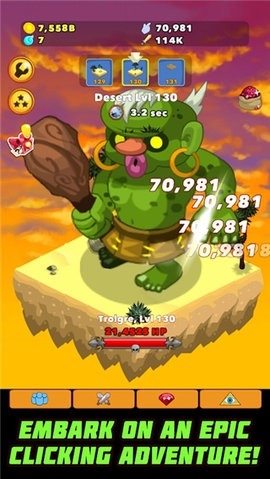 2、点击怪兽开始杀怪,获得金子。用金子来雇佣新英雄,造成更多伤害。造成的伤害越多,获得的金子也就越多。感受以指数增长的力量,成为强中之强!