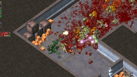 在最后一关中,不要急于打开房子的开关,先在房子前转一转,把怪都引到门前的激光栏边,这时会发射激光的怪会堆在一起“互相残杀”,因为他们的激光是可以伤到同伴的,等它们都死得差不多时再去打开开关,把它们逐一消灭,最后轻松通关!