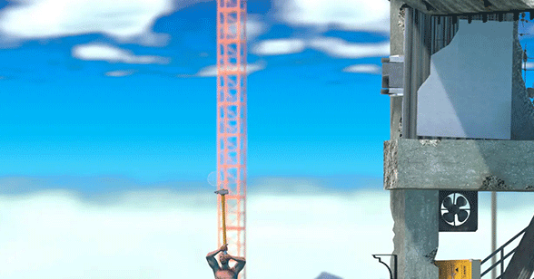 游戏内非常实用的技巧之一,优点是不需要借助地形,在弹跳到半空中的时候锤子可以勾住其他地方,达到一些无法正常攀爬的位置。