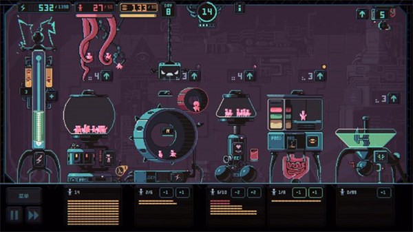 游戏中需要使用机械爪来运输人类,把他们送到不同的地方,让他们在不同的地方进行工作,会为我们呢产生能量。我们还要给予这些小人足够的食物并让他们进行不断的繁殖。