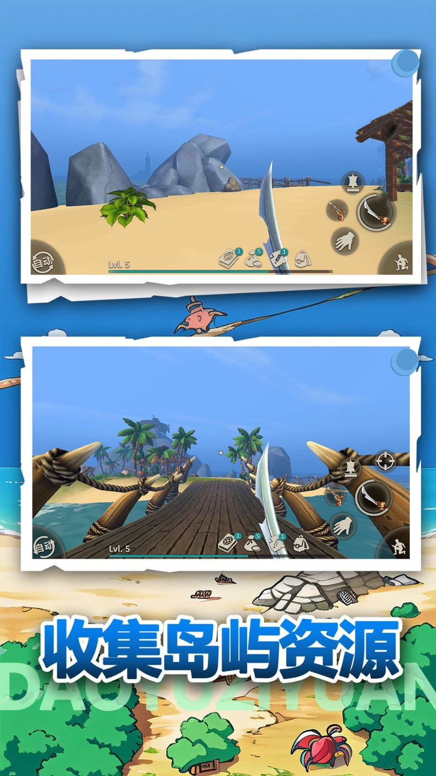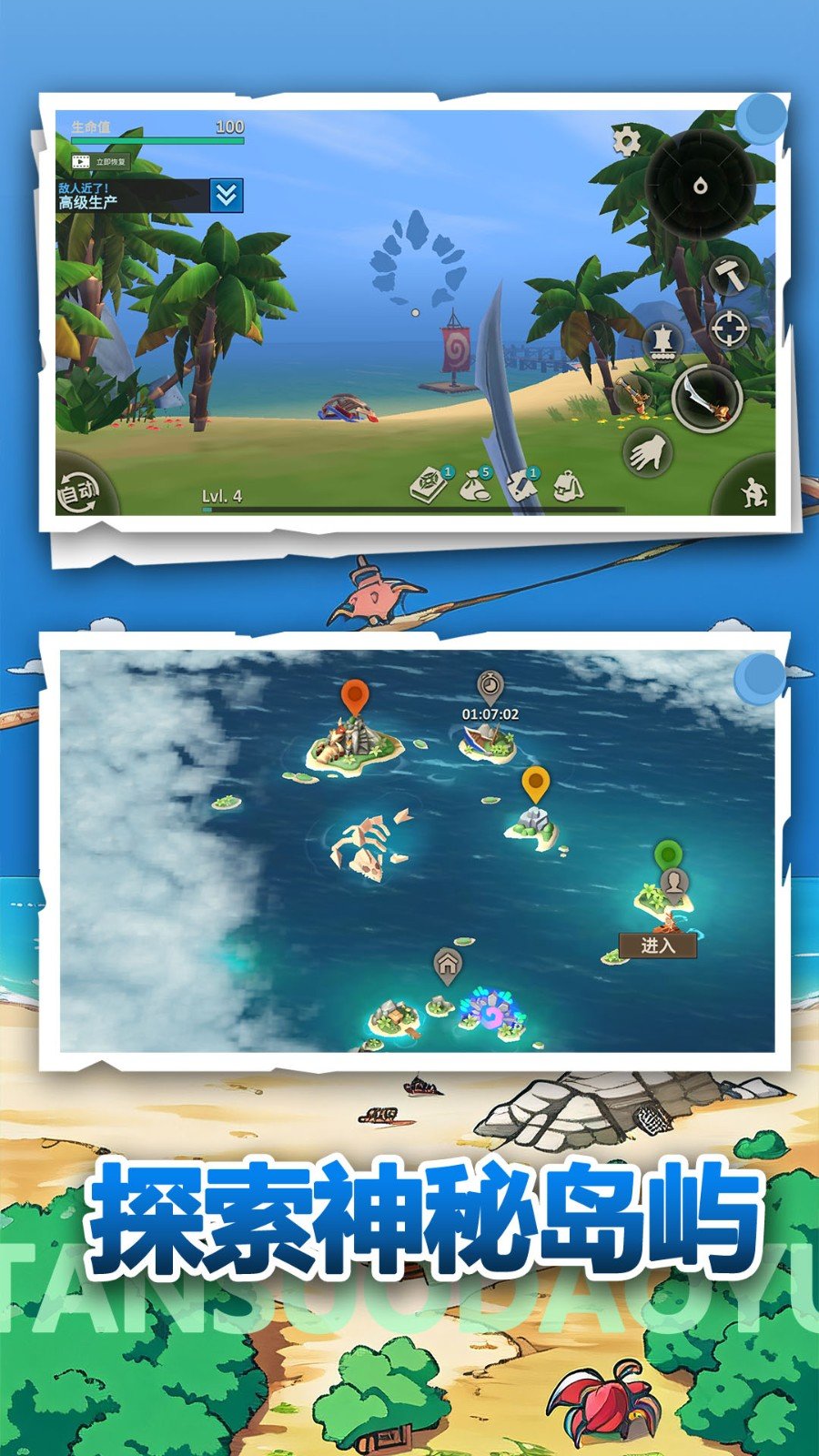 2、自由探索岛屿,随意探索岛屿上的各种地形和景观,发现隐藏的宝物和奇遇。