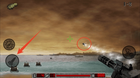 点击左侧这个导弹一样的按键就可以发射导弹了,因为导弹的数量不是很多,所以每场战斗尽量节约使用导弹,最好是在关键时刻危急关头再使用导弹。