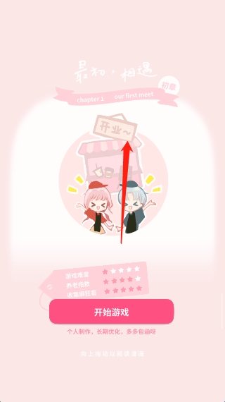 2、上划屏幕移动漫画剧情,然后点击开始游戏;