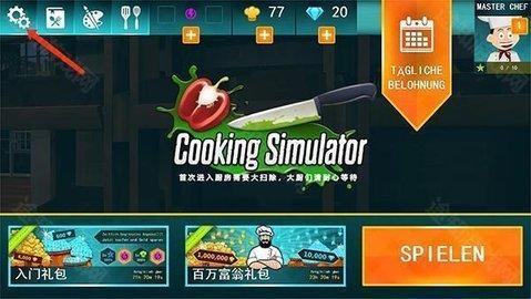 1、进入到料理模拟器游戏主界面之后点击左上角的“齿轮”按钮。