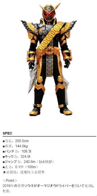 答:逢魔时王一般被认为是最强的假面骑士。其中来自2068年的逢魔时王,比TV最后庄吾变身成的2019年逢魔时王更强。名副其实的骑士天花板。各项数据均为不明。