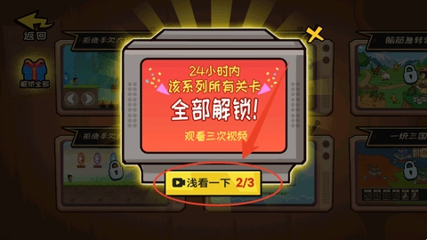 3、然后可以看到这里需要看三次广告才能解锁,其实不用,因为这里为大家带来的是去广告版本,所以直接点三次“浅看一下”就行了。