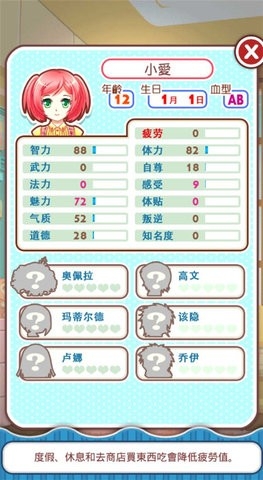 其内拥有完善的属性培养机制,玩家可通过课程培养解锁专家级技能,也能通过打工系统赚钱购买服饰道具。
