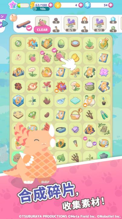 游戏中的玩法以合成消除为主,玩家将通过合并不同的碎片来获得各种素材,通过消耗不同的素材来制作各种各样的物品和装饰。通过使用这些道具来吸引小怪兽到你的栖息地里玩耍,和不同的小怪兽互动来增加好感度,不断观察这些可爱的小怪兽来体验最治愈的游玩过程。