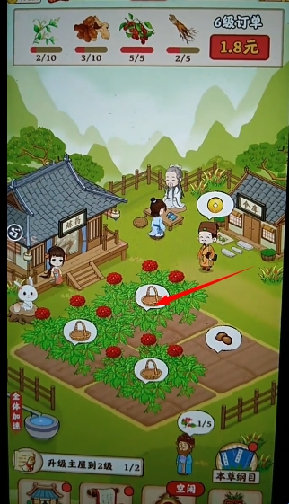 1、点击田地中带有篮子的成熟药材即可完成采收,不同药材生长周期各异;