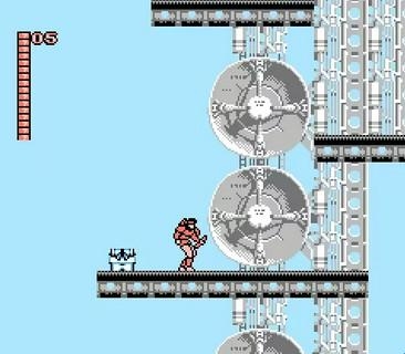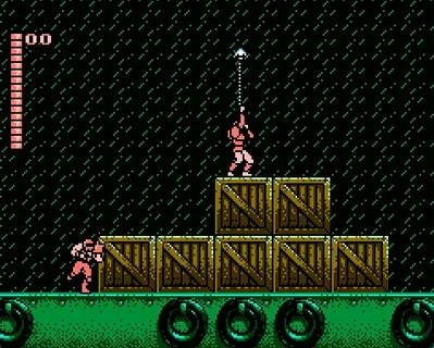 虽然本游戏主角是忍者,但是你是不能爬墙的,所以作为补偿,你可以用倒抓抓那些空心板面和滑行小车,当然这个倒抓与忍龙3不同是,你倒抓上车是随着车方向上的,所以就不会出现倒抓翻车这种事