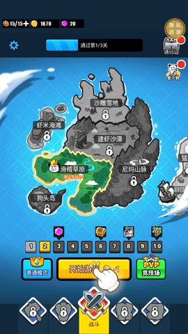 关卡地图:拥有超大地图,分布着滑稽草原、尼玛山脉、逮虾沙漠等多种关卡,不同地理位置有不同级别的难度挑战。