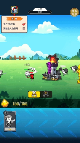 升级养成:玩家可通过钻石升级和金币升级等方式,提升士兵的属性和战斗力。升级优先级建议为挖矿效率>资源上限值>防御塔攻击力>防御塔生命值。