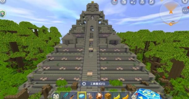 1、首先,玩家需要先切换到编辑模式,接着利用系统自带的飞天技能,飞到海拔100米的高空,这时玩家就可以清晰的看到在茫茫一片绿植中会存在几处显眼的灰色。没错,那里就是神像所在的区域。