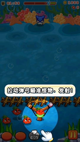 3、进入游戏之后,拉动弹弓瞄准怪物发射。