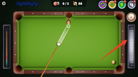 4、上下滑动屏幕左侧这个球杆,可以控制击球力度,松开就能击球了。