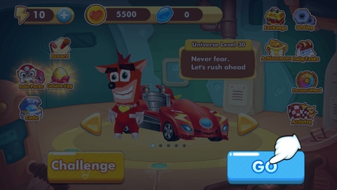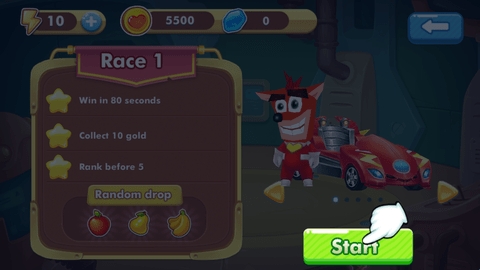 2、该竞速游戏以道具对抗赛为核心玩法,当然也有闯关模式、多人对战模式玩法。