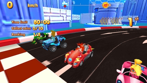 1、之前在PS上很火的卡通风竞速游戏,现在我们在手机上也能玩了,体验感一样。
