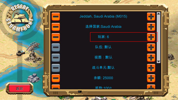 一些参数:战斗单元=快速游戏。视图=小地图显示情况。奖励=油井一段时间给予玩家的资金(调成0则为生存模式)。