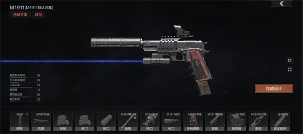 当然,我们还可以进一步拓展武器功能,比如给它安装一个战术轨,然后插上蓝点镭指,可以极大的提升腰射稳定度。武器原装的7发弹匣也可以更换成11发的加长弹匣。在加装了这么多升级配件后,枪械会变重,影响人机工效。此时再给它安装一个M1911专用握把,你就得到了一把完全体的“满改”M1911手枪了。