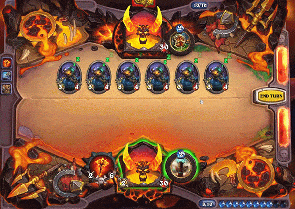 玩家除了能够与电脑对战磨练牌技,与战网好友相互切磋之外,玩家之间还可以通过另外两种极具挑战的游戏模式进行互动。经典的“对战模式”让玩家们进行正面对抗,从而提高奖章排名,获得赢取扩展包的机会。作为另一种全然不同的游戏模式,“打造模式”让玩家从若干随机卡牌中根据自身的策略选取卡牌,运用打造出来的全新套牌与其他选手对抗。除了通过对战赢得新的卡牌,玩家还能够通过购买扩展包来充实自己的卡牌收藏,或是将已有的卡牌进行消解,用所得的材料制造出新的卡牌。