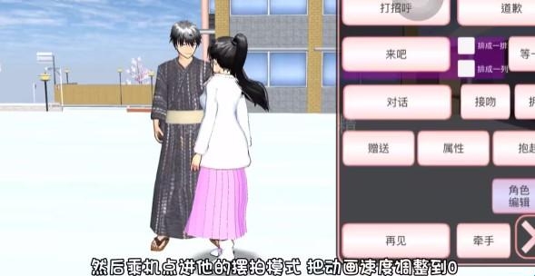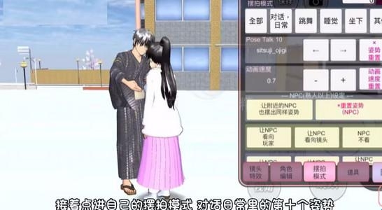 1、和NPC抱抱,进入摆拍,动画速度为0。