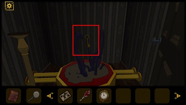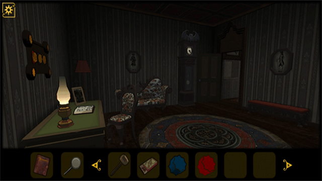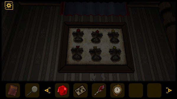 5、查看桌子抽屉,获得道具和查看日记,将红色机关石放入墙上的红色凹槽中,回头会发现进门处出现一只怪物,将门关上,注意门上的花纹