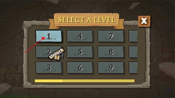 2、首次只能选择第一关,不过通过关卡后就能任意选择了。
