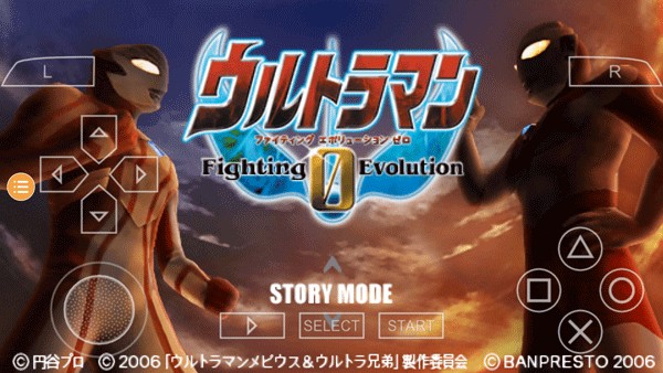 1、下载好奥特曼格斗进化0中文版手机版游戏后点击进入,可以看到首页,在左边的上下箭头选择模式,选好后在右边圆圈确定