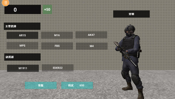 1、打开已经安装好的游戏,点击武器墙,即可自定义装备,新装备需要金钱购买获取