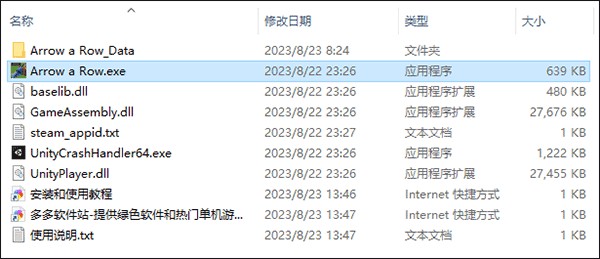 在本站下载并解压好游戏软件后,双击压缩包文件夹中的“Arrow a Row.exe”就可以开始运行程序游戏了。