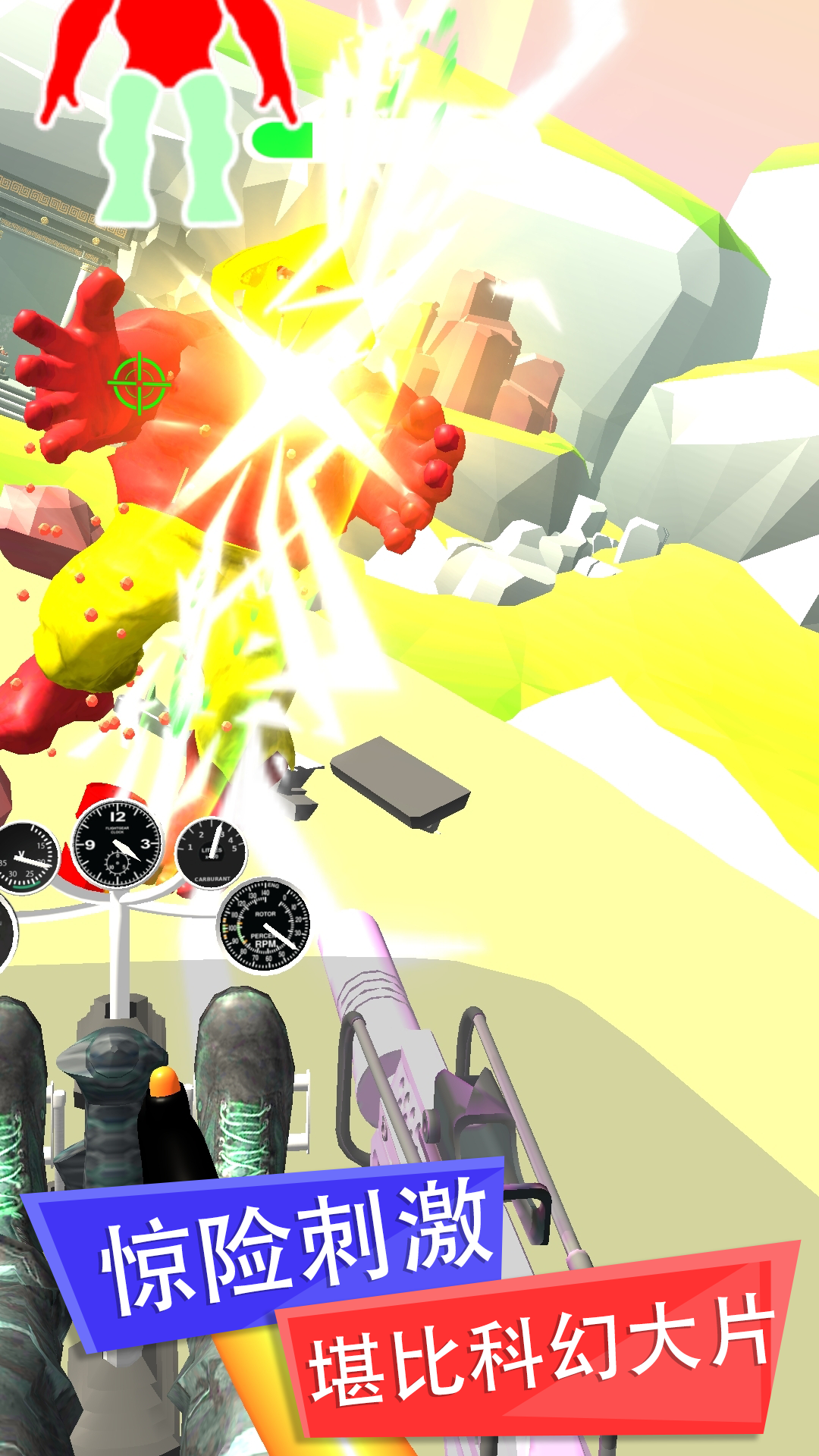 1、游戏中玩家将驾驶你的机甲面对超大的怪物boss,疯狂射击击退怪物。